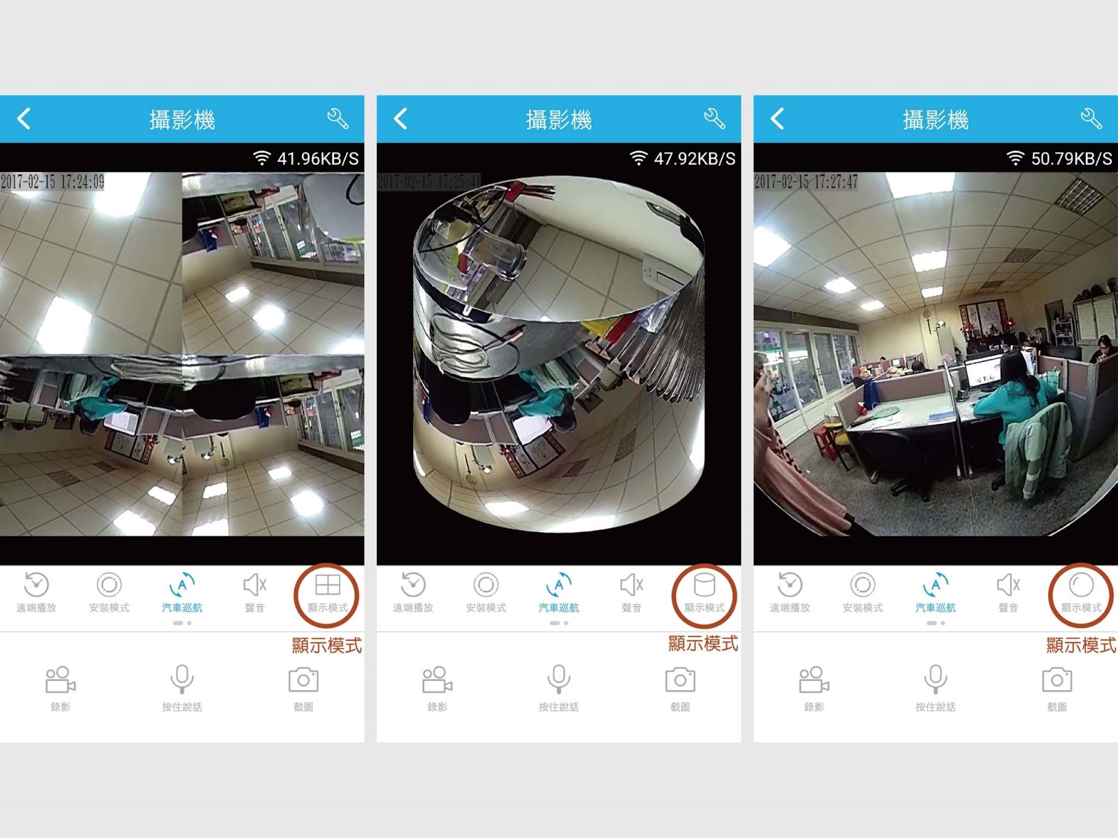 這台是型號VRCAM,魚眼鏡頭擁有高清130萬畫素,能夠連wifi也能接網路線,還能插SD記憶卡,最大能支援32G,具有國家雙重合格認證保障,用手機安裝app程式連結操控,還有畫面可以選擇,能分滾筒或圓球360度環繞,還有2個分割畫面或4個分割鏡頭,同時看到2個或4個360度旋轉的不同畫面,真的超級方便!